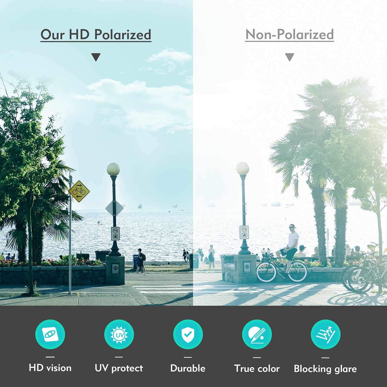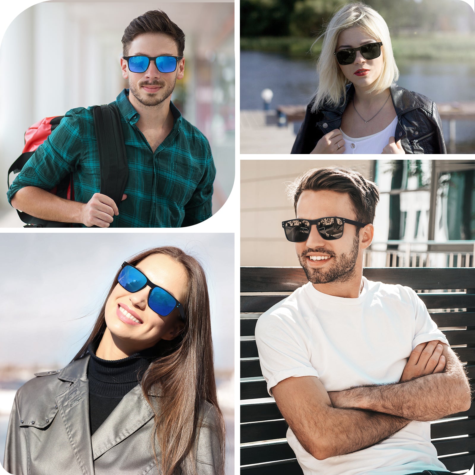 - [Polarised Sunglasses for Men Women] Polarised lenses with polarization properties can effectively eliminate reflected and scattered glare, etc. and block the harmful UV light at the same time. They don't make the world dark, they make it vibrant and clear without straining the eyes. Also, the variety of colored lenses are fun.